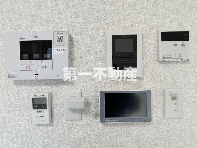 Array、24h換気設備、再生可能エネルギー設備、PCS設備、LED照明(居室以外)、ZEH-M外皮設備、高効率給湯器、キッチン、CATV(BS視聴可)、シャッター雨戸、セコムのセキュリティシステム |
